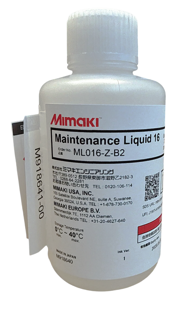 Mimaki Maintenance Liquid 16, 200ml bottle — ML016-Z-K2 (Original PN -ML016-Z-B2) is backordered and will ship as soon as it is back in stock.